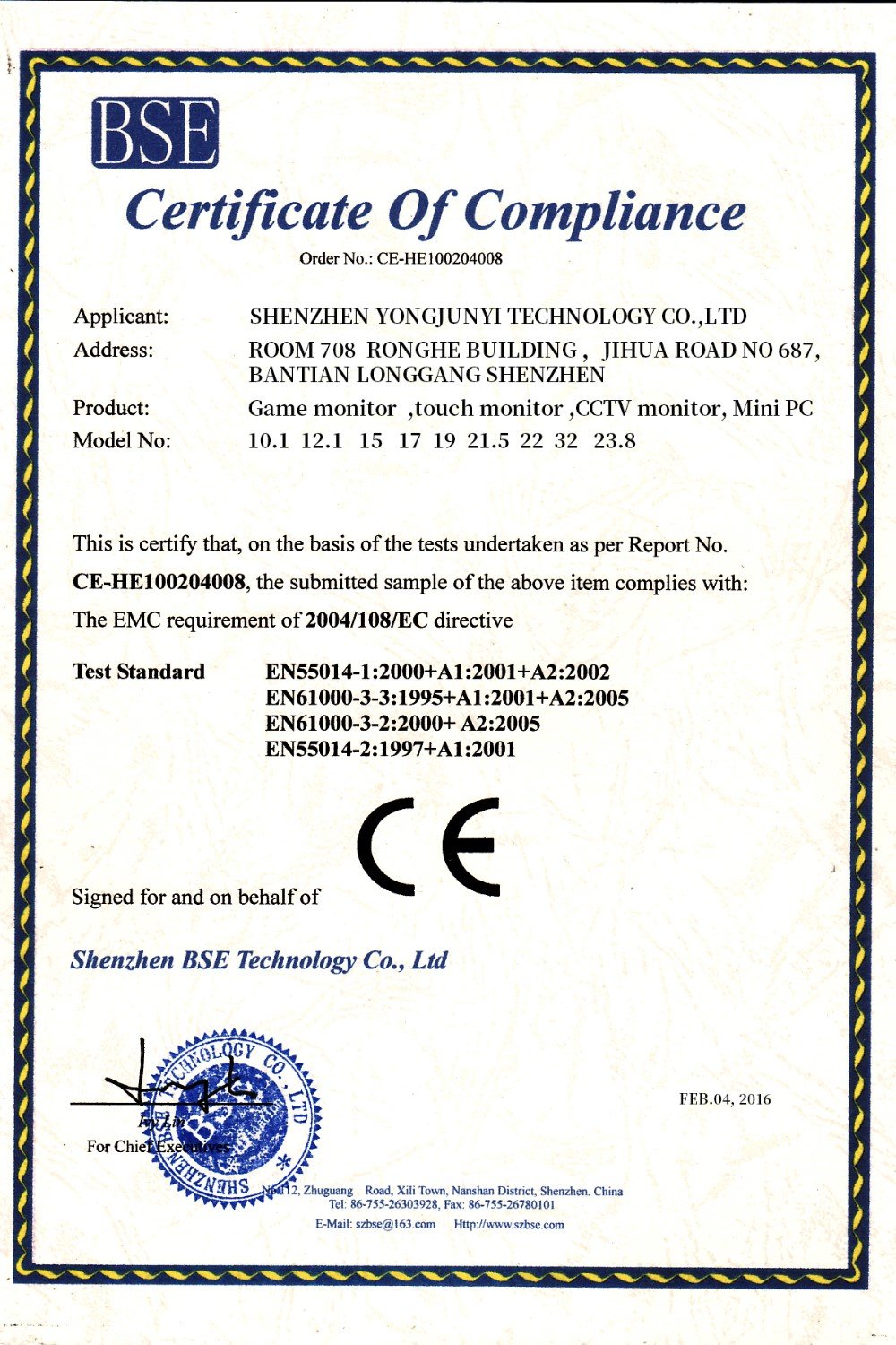 Our Certificates List: